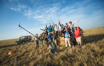 Keywords: outdoor landscape field KENYA, Masai Mara: In a photograph taken by Make It Kenya 02 October 2015, a group of tourists wave for a selfie-photograph having just landed and completed a Governor's Balloon Safari hot air balloon flights over the Masai Mara National Reserve. Seeing the Mara from the air requires an early start in order to be airborne for the sunrise, but offers tourists visiting the famous wildlife reserve a unique and panoramic way to view one of Kenya's most famous natural attractions from the basket of a hot air balloon. MANDATORY CREDIT: MAKE IT KENYA PHOTO / STUART PRICE. KENYA, Masai Mara: In a photograph taken by Make It Kenya 02 October 2015, a group of tourists wave for a selfie-photograph having just landed and completed a Governor's Balloon Safari hot air balloon flights over the Masai Mara National Reserve. Seeing the Mara from the air requires an early start in order to be airborne for the sunrise, but offers tourists visiting the famous wildlife reserve a unique and panoramic way to view one of Kenya's most famous natural attractions from the basket of a hot air balloon. MANDATORY CREDIT: MAKE IT KENYA PHOTO / STUART PRICE. |