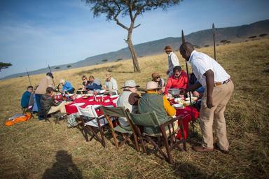 Keywords: outdoor KENYA, Masai Mara: In a photograph taken by Make It Kenya 02 October 2015, a group of tourists enjoy a champagne bush breakfast having flown in a Governor's Balloon Safari hot air balloon flight over the Masai Mara National Reserve. Seeing the Mara from the air requires an early start in order to be airborne for the sunrise, but offers tourists visiting the famous wildlife reserve a unique and panoramic way to view one of Kenya's most famous natural attractions from the basket of a hot air balloon. MANDATORY CREDIT: MAKE IT KENYA PHOTO / STUART PRICE. KENYA, Masai Mara: In a photograph taken by Make It Kenya 02 October 2015, a group of tourists enjoy a champagne bush breakfast having flown in a Governor's Balloon Safari hot air balloon flight over the Masai Mara National Reserve. Seeing the Mara from the air requires an early start in order to be airborne for the sunrise, but offers tourists visiting the famous wildlife reserve a unique and panoramic way to view one of Kenya's most famous natural attractions from the basket of a hot air balloon. MANDATORY CREDIT: MAKE IT KENYA PHOTO / STUART PRICE. |