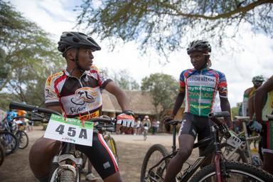 | Keywords: outdoor motorcycle bike vehicle sport KENYA, Naro Moru: In a photograph taken by Make it Kenya 31 October, cyclists prepare ahead of the start of the Naro Moru Trail Trial race, a pre-cursor event to the inaugural Mt. Kenya Epik Challenge which will take place from the 22-28 November. The Trial Trail, organised by Naro Moru River Lodge, hosted over 30 cyclists including men, women and children, and saw the participants covering 35km along an off-road course around the surrounding area. The Epik Challenge, which was founded by former world marathon champion Douglas Wakihuri and renown cyclist David Kinja, will begin at Naro Moru and traverse through the counties of Laikipia, Kirinyaga, Nyeri, Meru and Embu, and see participants cycle through the stunning foothills of Mt. Kenya, through bush, wilderness, wildlife and villages, covering almost 500km in six days. MAKE IT KENYA PHOTO / STUART PRICE. KENYA, Naro Moru: In a photograph taken by Make it Kenya 31 October, cyclists prepare ahead of the start of the Naro Moru Trail Trial race, a pre-cursor event to the inaugural Mt. Kenya Epik Challenge which will take place from the 22-28 November. The Trial Trail, organised by Naro Moru River Lodge, hosted over 30 cyclists including men, women and children, and saw the participants covering 35km along an off-road course around the surrounding area. The Epik Challenge, which was founded by former world marathon champion Douglas Wakihuri and renown cyclist David Kinja, will begin at Naro Moru and traverse through the counties of Laikipia, Kirinyaga, Nyeri, Meru and Embu, and see participants cycle through the stunning foothills of Mt. Kenya, through bush, wilderness, wildlife and villages, covering almost 500km in six days. MAKE IT KENYA PHOTO / STUART PRICE. |