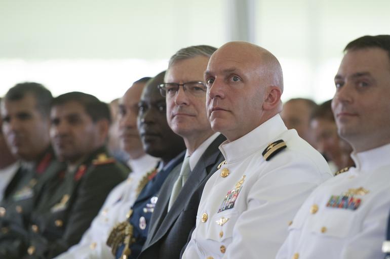 | Keywords: 2015 NDU Graduation 150618-D-KC128-193.jpg en Prospective graduates listen as Chairman of the Joint Chiefs of Staff Gen Martin E Dempsey delivers the commencement address at the 2015 graduation of National Defense University's College of International Security Affairs National War College Information Resources Management College and Dwight D Eisenhower School for National Security and Resource Strategy schools on Fort Lesley J McNair Washington D C June 18 2015 NDU is dedicated to being the premier national security institution focused on advanced joint education leader development and scholarship DoD Photo by Mass Communication Specialist 1st Class Daniel Hinton/released 2015-06-18 Petty Officer 1st Class Daniel Hinton https //www dvidshub net/image/2011350 150618-D-KC128-193 2015-06-18 14 21 WASHINGTON D C DC US PD-USGov Martin E Dempsey in 2015 Fort Lesley J McNair Images from DoD uploaded by Fæ |