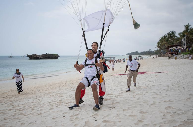 Keywords: outdoor sport snow KENYA, Watamu: In a photograph taken by Make It Kenya 17 January 2016, Kenya's Cabinet Secretary for Tourism Hon. Najib Balala arrives in the coastal town of Watamu by parachute after skydiving out of a plane from approx. 11,000ft. Kenya's famous wildlife and beautiful tropical coastline is being showcased in a series of live web broadcasts using state-of–the-art technology. #KenyaLive has enabled people to witness the excitement of a night safari in the Mara in real time using specialist night-vision equipment and is now in Watamu highlighting the work of the turtle conservation organisation Local Ocean Trust, and other activities including stand-up paddle boarding with dolphins, snorkelling and scuba diving by using the scial media application Periscope. MAKE IT KENYA PHOTO / STUART PRICE. KENYA, Watamu: In a photograph taken by Make It Kenya 17 January 2016, Kenya's Cabinet Secretary for Tourism Hon. Najib Balala arrives in the coastal town of Watamu by parachute after skydiving out of a plane from approx. 11,000ft. Kenya's famous wildlife and beautiful tropical coastline is being showcased in a series of live web broadcasts using state-of–the-art technology. #KenyaLive has enabled people to witness the excitement of a night safari in the Mara in real time using specialist night-vision equipment and is now in Watamu highlighting the work of the turtle conservation organisation Local Ocean Trust, and other activities including stand-up paddle boarding with dolphins, snorkelling and scuba diving by using the scial media application Periscope. MAKE IT KENYA PHOTO / STUART PRICE. |
