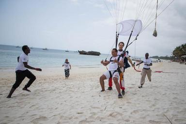 Keywords: outdoor KENYA, Watamu: In a photograph taken by Make It Kenya 17 January 2016, Kenya's Cabinet Secretary for Tourism Hon. Najib Balala arrives in the coastal town of Watamu by parachute after skydiving out of a plane from approx. 11,000ft. Kenya's famous wildlife and beautiful tropical coastline is being showcased in a series of live web broadcasts using state-of–the-art technology. #KenyaLive has enabled people to witness the excitement of a night safari in the Mara in real time using specialist night-vision equipment and is now in Watamu highlighting the work of the turtle conservation organisation Local Ocean Trust, and other activities including stand-up paddle boarding with dolphins, snorkelling and scuba diving by using the scial media application Periscope. MAKE IT KENYA PHOTO / STUART PRICE. KENYA, Watamu: In a photograph taken by Make It Kenya 17 January 2016, Kenya's Cabinet Secretary for Tourism Hon. Najib Balala arrives in the coastal town of Watamu by parachute after skydiving out of a plane from approx. 11,000ft. Kenya's famous wildlife and beautiful tropical coastline is being showcased in a series of live web broadcasts using state-of–the-art technology. #KenyaLive has enabled people to witness the excitement of a night safari in the Mara in real time using specialist night-vision equipment and is now in Watamu highlighting the work of the turtle conservation organisation Local Ocean Trust, and other activities including stand-up paddle boarding with dolphins, snorkelling and scuba diving by using the scial media application Periscope. MAKE IT KENYA PHOTO / STUART PRICE. |