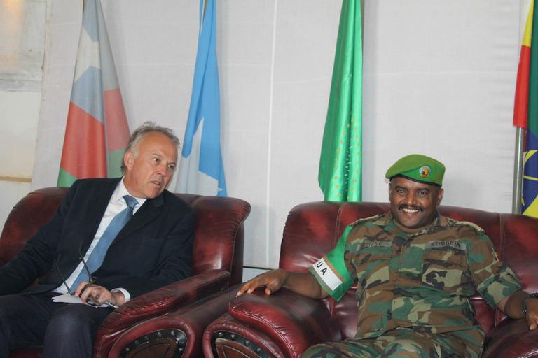 | Keywords: indoor Michael Keating, the Special Representative of the United Nations Secretary-General (SRSG) for Somalia meets the African Union Mission in Somalia (AMISOM) Sector 3 commander Yemane Gabre Mikael during a visit to Baidoa on February 14, 2016. AMISOM Photo/ Sabir Olad Michael Keating, the Special Representative of the United Nations Secretary-General (SRSG) for Somalia meets the African Union Mission in Somalia (AMISOM) Sector 3 commander Yemane Gabre Mikael during a visit to Baidoa on February 14, 2016. AMISOM Photo/ Sabir Olad Michael Keating, the Special Representative of the United Nations Secretary-General (SRSG) for Somalia meets the African Union Mission in Somalia (AMISOM) Sector 3 commander Yemane Gabre Mikael during a visit to Baidoa on February 14, 2016. AMISOM Photo/ Sabir Olad 2016 02 14 AMISOM Delegates Visit Baidoa-7 (25045405795).jpg Michael Keating the Special Representative of the United Nations Secretary-General SRSG for Somalia meets the African Union Mission in Somalia AMISOM Sector 3 commander Yemane Gabre Mikael during a visit to Baidoa on February 14 2016 AMISOM Photo/ Sabir Olad<br/> Personality rights https //www flickr com/photos/au_unistphotostream/25045405795/ 2016_02_14_AMISOM_Delegates_Visit_Baidoa-7 2016-02-14 19 00 https //www flickr com/people/61765479 N08 AMISOM Public Information cc-zero AMISOM Public Information https //flickr com/photos/61765479 N08/25045405795 2016-05-19 21 19 13 cc-zero Photographs by the African Union Mission to Somalia Uncategorized 2016 October 23 |