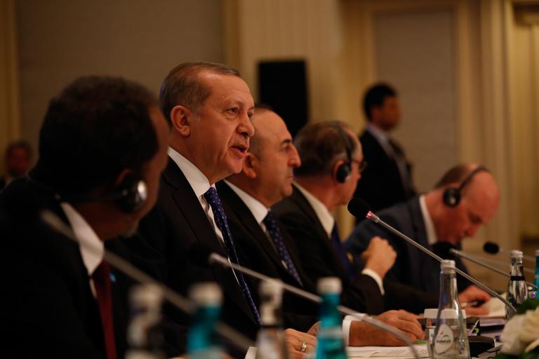 Keywords: people indoor The President of Turkey, H.E. Recep Tayyip Erdoğan (second from left) speaks during the opening session of the High-Level Partnership Forum (HLPF), focusing on progress in Somalia. The two-day forum opened in Istanbul, Turkey on February 23, 2016 and aims to review progress to implement the New Deal Compact that was endorsed in Brussels, Belgium in September 2013. UN Photo The President of Turkey, H.E. Recep Tayyip Erdoğan (second from left) speaks during the opening session of the High-Level Partnership Forum (HLPF), focusing on progress in Somalia. The two-day forum opened in Istanbul, Turkey on February 23, 2016 and aims to review progress to implement the New Deal Compact that was endorsed in Brussels, Belgium in September 2013. UN Photo |