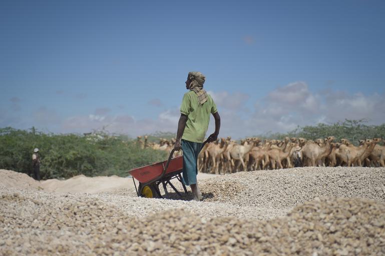 | Keywords: outdoor A quarry worker pushes his wheel barrow over gravel at a small quarry in Mogadishu, Somalia, as camels walk by on a road nearby on April 10. AMISOM Photo / Tobin Jones A quarry worker pushes his wheel barrow over gravel at a small quarry in Mogadishu, Somalia, as camels walk by on a road nearby on April 10. AMISOM Photo / Tobin Jones A quarry worker pushes his wheel barrow over gravel at a small quarry in Mogadishu, Somalia, as camels walk by on a road nearby on April 10. AMISOM Photo / Tobin Jones 2016 04 10 Stone Quarry-2 (26488270511).jpg A quarry worker pushes his wheel barrow over gravel at a small quarry in Mogadishu Somalia as camels walk by on a road nearby on April 10 AMISOM Photo / Tobin Jones<br/> Personality rights https //www flickr com/photos/au_unistphotostream/26488270511/ 2016_04_10_Stone_Quarry-2 2016-04-10 10 06 https //www flickr com/people/61765479 N08 AMISOM Public Information cc-zero AMISOM Public Information https //flickr com/photos/61765479 N08/26488270511 2016-05-19 20 34 58 cc-zero Photographs by the African Union Mission to Somalia Uncategorized 2016 October 23 |