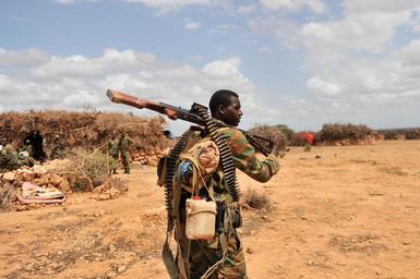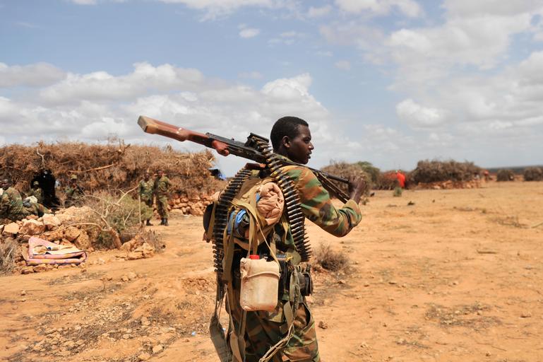 Keywords: outdoor animal An Ethiopian soldier serving under the African Union Mission in Somalia (AMISOM) on foot patrol in Halgan village, Hiran region on June 10, 2016. This was a day after a battle with Al-Shabaab militants on June 09, 2016. Maj. Gen. Nakibus Lakara, the AMISOM Acting Force Commander said more than 140 Al-Shabaab militants were killed in the battle. AMISOM Photo / Ilyas Ahmed An Ethiopian soldier serving under the African Union Mission in Somalia (AMISOM) on foot patrol in Halgan village, Hiran region on June 10, 2016. This was a day after a battle with Al-Shabaab militants on June 09, 2016. Maj. Gen. Nakibus Lakara, the AMISOM Acting Force Commander said more than 140 Al-Shabaab militants were killed in the battle. AMISOM Photo / Ilyas Ahmed