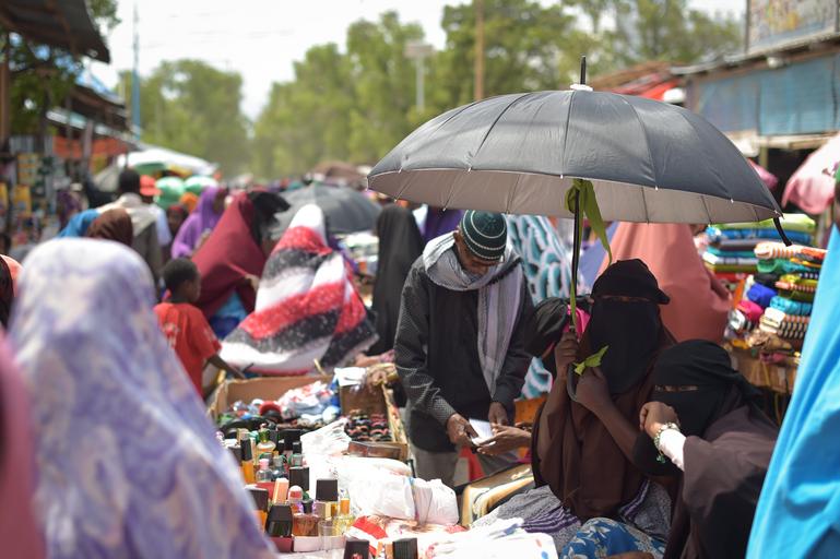 Keywords: outdoor Women sit by their stall in Hamarweyne market in Mogadishu, Somalia, as people shop in preparation for Eid el-Fitr on July 4, 2016. AMISOM Photo / Tobin Jones Women sit by their stall in Hamarweyne market in Mogadishu, Somalia, as people shop in preparation for Eid el-Fitr on July 4, 2016. AMISOM Photo / Tobin Jones |