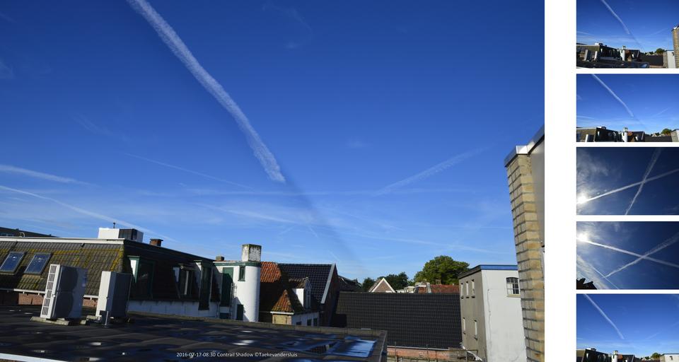 | Keywords: weather optics optic contrail shadow black beam dark line lines volumetric vliegtuigstreep vliegtuig streep schaduw sky lucht optisch vapor trail climate model mechanism klimaat klimaatmodel mechanisme edge chemtrail debunking debunk outdoor This morning I saw this strange looking shadow underneath a contrail, it disappered within seconds. Apparently this optical phenomena appears when a contrail casts a shadow on a lower lying thin layer of cloud [almost invisible]. But myself I'm not quite sure about this explanation, I have to think a bit more. Couldn't it instead have an ything to do with polarisation maybe? I don't know. The thing about shadows being that they are not really visible. They are the absence of light rather than a shadow being projected, if you look through them you will not see them the photos themselves are non-processed, I only added the title and copypasted the 5 small versions to the right (they are only resized, and not otherwise processed. The top one is the oldest shot, the lowest one is the last shot just a few seconds later) This morning I saw this strange looking shadow underneath a contrail, it disappered within seconds. Apparently this optical phenomena appears when a contrail casts a shadow on a lower lying thin layer of cloud [almost invisible]. But myself I'm not quite sure about this explanation, I have to think a bit more. Couldn't it instead have an ything to do with polarisation maybe? I don't know. The thing about shadows being that they are not really visible. They are the absence of light rather than a shadow being projected, if you look through them you will not see them the photos themselves are non-processed, I only added the title and copypasted the 5 small versions to the right (they are only resized, and not otherwise processed. The top one is the oldest shot, the lowest one is the last shot just a few seconds later) |