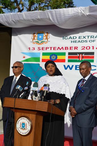 Keywords: Kenya's Foreign Affairs Cabinet Secretary Amina Mohamed (middle), reads the communique at the conclusion of the historic 28th Extra-Ordinary IGAD Heads of State Summit in Mogadishu, Somalia on September 13, 2016. AMISOM Photo / Omar Abdisalan Kenya's Foreign Affairs Cabinet Secretary Amina Mohamed (middle), reads the communique at the conclusion of the historic 28th Extra-Ordinary IGAD Heads of State Summit in Mogadishu, Somalia on September 13, 2016. AMISOM Photo / Omar Abdisalan |