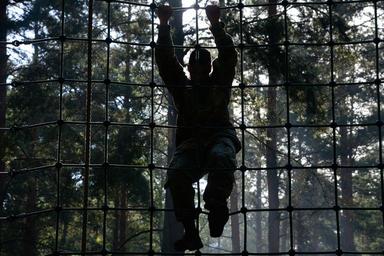 | Keywords: u.s. army usarmy eucom u.s. army europe usarmyeurope usareur nato allies partnership grafenwoehr germany strong europe strongeurope europe best warrior european 21st tsc 21sttsc cbrn 2cr 2nd cavalry regiment 173rd 173 airborne mi 650 650th military intelligence group 7th army training command armytrainingcommand atc 12th 12 cab combat avaiation brigade obstacle course obstaclecourse apft army physical fitness test sit ups up push run soldiers chemical biological radioactive nuclear simulation obstacle outdoor U.S. Army Spc. Gerardo Gonzalez, assigned to the 21st Theater Sustainment Command, climbs down a net as part of an obstacle course during the 2016 European Best Warrior Competition held at the 7th Army Training Command's Grafenwoehr Training Area, Germany, Aug. 8, 2016. The intense, grueling annual week-long competition is the most prestigious competitive event of the region. Event organizers will announce the year's top junior officer, noncommissioned officer and Soldier during a concluding ceremony scheduled for Aug. 11 at the Grafenwoehr Physical Fitness Center. (U.S. Army photo by Pfc. Emily Houdershieldt) U.S. Army Spc. Gerardo Gonzalez, assigned to the 21st Theater Sustainment Command, climbs down a net as part of an obstacle course during the 2016 European Best Warrior Competition held at the 7th Army Training Command's Grafenwoehr Training Area, Germany, Aug. 8, 2016. The intense, grueling annual week-long competition is the most prestigious competitive event of the region. Event organizers will announce the year's top junior officer, noncommissioned officer and Soldier during a concluding ceremony scheduled for Aug. 11 at the Grafenwoehr Physical Fitness Center. (U.S. Army photo by Pfc. Emily Houdershieldt) |