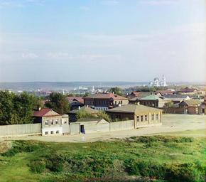 Keywords: Продолжение вправо предыдущей фотографии, с большим разрывом [4]. После деревьев у левого края фотографии вдали видно красное кирпичное здание духовного училища (1858), в котором как раз с 1909 года разместилась также духовная семинария. Над зданием возвышается белая домовая церковь с луковичным пятиглавием. Купол справа от нее принадлежит другому зданию - Никольской старообрядческой часовне В советское время здание духовного училища и духовной семинарии было полностью перестроено для Свердловского института народного хозяйства (ныне Уральский государственный экономический университет). [3. 4] Далее вправо видна расположенная ближе церковь с шатровой колокольней. Это Никольская церковь при Нуровском сиротском приюте, построенная в 1877 г. на средства коллежского советника М.А. Нурова. Церковь была закрыта в 1920 г. и перестроена. Теперь она восстановлена. [3. 4] Дальше вправо, на заднем плане - Архиерейский дом с необычной по силуэту двуглавой Крестовой Богородицкой церковью. Церковь закрыта в 1924 г., здание перестроено. [3. 4] Немного правее и ближе - единоверческая Спасская (Толстиковская) церковь (1805 - 1831), построенная большей частью на средства купца Ф.Я.Толстикова. В 1928 г. храм был закрыт и вскоре снесен. [3. 4] Справа виден женский Ново-Тихвинский монастырь с возвышающимся в центре ампирным собором Александра Невского (1838 - 1854, арх. М.П.Малахов). Фотографии этого монастыря рассмотрены отдельно на другой странице. Правее основной массы ампирных храмов видна также принадлежащая монастырю церковь Всех Святых (1902), которую Прокудин-Горский не сфотографировал отдельно крупным планом. <a href="http://www.ps-spb2008.narod.ru/ur_ekg1.htm#view4" rel="nofollow">www.ps-spb2008.narod.ru/ur_ekg1.htm#view4</a> oldphoto libraryofcongress prokudingorskii екатеринбург стараяфотография прокудингорский библиотекаконгресса историяекатеринбурга