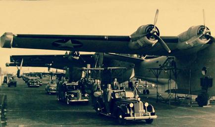 | Keywords: vehicle aircraft 208-PU-171A-26: President Franklin D. Roosevelt inspects U.S. Arsenal of Democracy: In a 8.700 mile tour of the United States war industries and centers of the U.S. Armed Forces, President Roosevelt received a first-hand picture of American war production. At the end of the coast-to-coast journey, he said that he was deeply impressed by the progress of the nation’s war program. In some instances, he said, factories were running ahead of schedule. Mr. Roosevelt listed 26 industrial, Army and Navy establishments during the two-week trip. Shown: The Presidential party passes under the wings of a line a of U.S. Navy patrol bombers at a West Coast war plant. The President is in the rear of the first car. Office of War Information Collection. (2016/08/30). 208-PU-171A-26: President Franklin D. Roosevelt inspects U.S. Arsenal of Democracy: In a 8.700 mile tour of the United States war industries and centers of the U.S. Armed Forces, President Roosevelt received a first-hand picture of American war production. At the end of the coast-to-coast journey, he said that he was deeply impressed by the progress of the nation’s war program. In some instances, he said, factories were running ahead of schedule. Mr. Roosevelt listed 26 industrial, Army and Navy establishments during the two-week trip. Shown: The Presidential party passes under the wings of a line a of U.S. Navy patrol bombers at a West Coast war plant. The President is in the rear of the first car. Office of War Information Collection. (2016/08/30). |