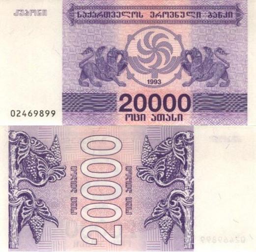 | Keywords: 20 000 купонов лари. 4. 1993.jpg  ru 20 000 купонов ла и 4 выпуск 1993 г  ациональный банк Г узии 1993 http //oldcoffer narod ru/ PD-GE-exempt currency Original upload log ru wikipedia ftcg page ru wikipedia 20_000_ D0 BA D1 83 D0 BF D0 BE D0 BD D0 BE D0 B2_ D0 BB D0 B0 D1 80 D0 B8 _4 _1993 jpg wikitable - 20 22 14 March 2011 446 × 438 107 060 bytes Knyaz-1988 w ru <nowiki> К аткое описание Изоб ажение Описание 20 000 купонов ла и 4 выпуск 1993 г Авто  ациональный банк Г узии В емя создания 199</nowiki> Banknotes of Georgia 1993 4th series Banknotes with a face value of 20000 Purple banknotes Griffins on banknotes Grapes on banknotes Mkhedruli banknotes Both sides of banknotes |