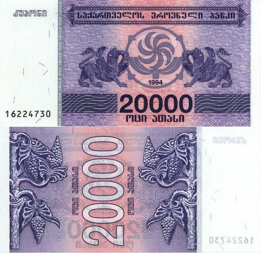 | Keywords: 20 000 купонов лари. 5. 1994.jpg  ru 20 000 купонов ла и 5 выпуск 1994 г  ациональный банк Г узии 1994 http //oldcoffer narod ru/ PD-GE-exempt currency Original upload log ru wikipedia ftcg page ru wikipedia 20_000_ D0 BA D1 83 D0 BF D0 BE D0 BD D0 BE D0 B2_ D0 BB D0 B0 D1 80 D0 B8 _5 _1994 jpg wikitable - 20 42 14 March 2011 850 × 824 392 052 bytes Knyaz-1988 w ru <nowiki> К аткое описание Изоб ажение Описание 20 000 купонов ла и 5 выпуск 1994 г Авто  ациональный банк Г узии В емя создания 199</nowiki> Banknotes of Georgia 1994 Banknotes with a face value of 20000 Purple banknotes Griffins on banknotes Grapes on banknotes Both sides of banknotes Mkhedruli banknotes |