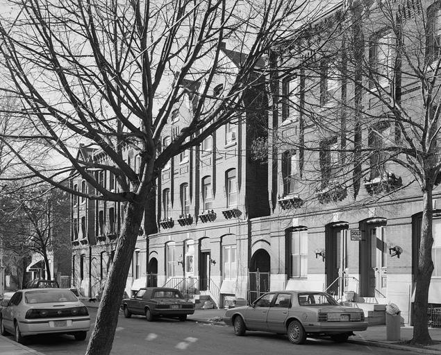 | Keywords: 2100 Block North Uber Street Rowhouses (cropped).jpg en 2100-Block North Uber Street west side between Diamond Street and Susquehanna Avenue Philadelphia Pennsylvania 1885-86 Willis G Hale architect Historic American Buildings Survey http //memory loc gov/pnp/habshaer/pa/pa4000/pa4025/photos/213815pv jpg<br>http //loc gov/pictures/item/pa4025/ HABS PA-6717-4 Joseph Elliott HABS photographer 2003 PA-6717-4 Buildings by Willis G Hale Joseph Elliott Built in Pennsylvania in 1886 1880s houses in Pennsylvania Houses built in the United States in 1886 Buildings in Philadelphia Pennsylvania Row houses in Philadelphia |