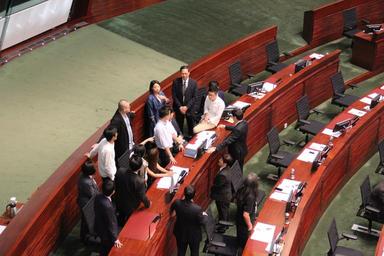 Keywords: 香港本土議員宣誓風波上演政治對決大戲 21.jpg zh-tw 香港立法 10 26日上演驚人政治大戲(美 之音海彥拍 ) 親中建制派上 三製 立法 流 阻止 年新政梁頌恆和遊蕙禎再次宣誓,並政治施壓 迫立法 主席梁君彥改變自己先前裁定,宣布押後兩人宣誓後,10 26日的立法 大 成為外界 注的焦點 同聲譴責梁君彥讓政治凌駕法律的 建制派議員, 三上午組成人鏈,成功護 梁頌恆和遊蕙禎 入議事大廳要求宣誓,但 終梁君彥以無法恢復 議廳秩序為由宣布休 ,再次阻止兩人宣誓 2016-10-26 11 29 12 http //www voachinese com/a/localist-legislators-fail-to-swear-20161026/3566630 html 海彥 other versions Custom license marker 2016 11 06 PD-USGov-VOA Hong Kong LegCo members' oath-taking controversy |