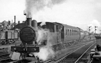 | Keywords: blackandwhite monochrome steam engine locomotive vehicle train steam locomotive outdoor railroad black and white A Holiday express from Derby proceeds from Yarmouth (Beach) station on its last leg to Lowestoft, 1951. An ancient ex-Great Eastern F4 2-4-2T (No. 67176, displaced from its work on London Suburban services) is struggling out with this main-line stock for Lowestoft.  Attribution: Ben Brooksbank A Holiday express from Derby proceeds from Yarmouth (Beach) station on its last leg to Lowestoft, 1951. An ancient ex-Great Eastern F4 2-4-2T (No. 67176, displaced from its work on London Suburban services) is struggling out with this main-line stock for Lowestoft.  Attribution: Ben Brooksbank |