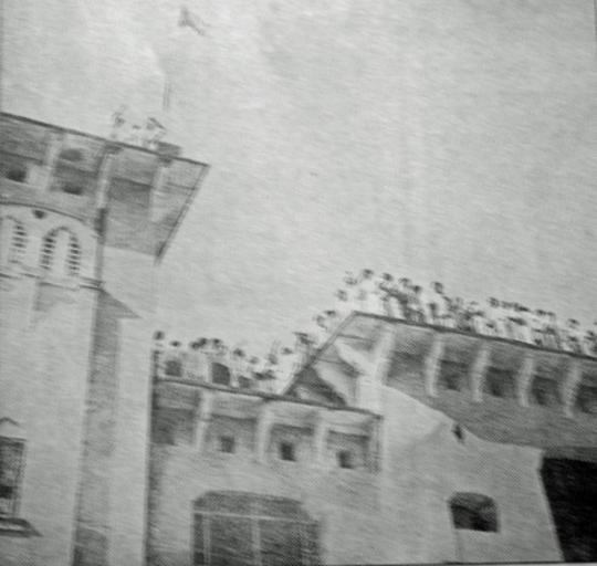 | Keywords: 22 Feb 1952 KolaVaban.jpg February 22 1952 morning at when trying to fly a black flag on the top of Kola Vaban The picture was taken from infornt of Modur Cantin Dhaka East Pakistan Author Album 1952-02-22 Rofiqul Islam PD-Pakistan History of Pakistan Historical images of Dhaka Bengali Language Movement 1952 Old vintage photographs of Bangladesh |