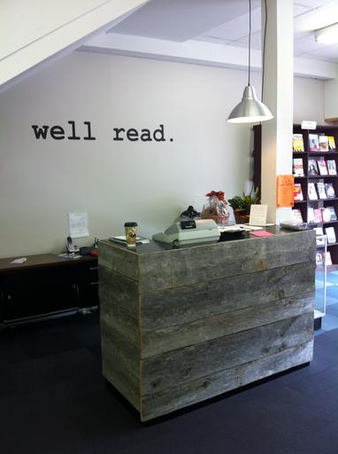 Keywords: counter bookstore barnwood wellread brickdistrict