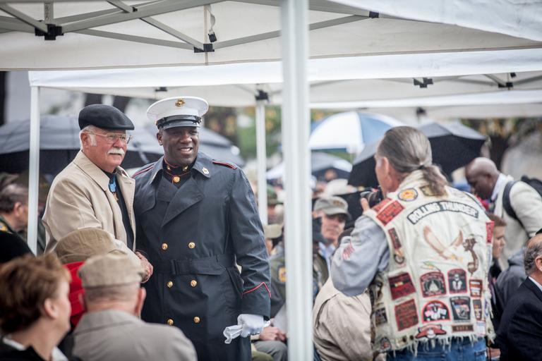 | Keywords: sgtmaj green sgtmajgreen smmc combat camera combatcamera sergeant major of the marine corps sergeantmajorofthemarinecorps marine corps marinecorps usmc marines arlington va usa The 18th Sergeant Major of the Marine Corps, Ronald L. Green, poses for a photo with Medal of Honor Recipient and Retired Marine Corps Col. Harvey Curtiss Barnum, Jr., at the Marine Corps Birthday Wreath Laying Ceremony at the Marine Corps War Memorial, Arlington, VA, Nov. 10, 2015. (U.S. Marine Corps photo by Sgt. Melissa Marnell, Office of the Sergeant Major of the Marine Corps/Released) The 18th Sergeant Major of the Marine Corps, Ronald L. Green, poses for a photo with Medal of Honor Recipient and Retired Marine Corps Col. Harvey Curtiss Barnum, Jr., at the Marine Corps Birthday Wreath Laying Ceremony at the Marine Corps War Memorial, Arlington, VA, Nov. 10, 2015. (U.S. Marine Corps photo by Sgt. Melissa Marnell, Office of the Sergeant Major of the Marine Corps/Released) |