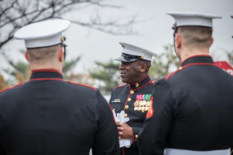 | Keywords: sgtmaj green sgtmajgreen smmc combat camera combatcamera sergeant major of the marine corps sergeantmajorofthemarinecorps marine corps marinecorps usmc marines arlington va usa The 18th Sergeant Major of the Marine Corps, Ronald L. Green, is joined by SgtMaj. Joseph Gray, Sergeant Major, Marine Barracks Washington, D.C., in laying wreaths on the graves of Marines at Arlington National Cemetery, Arlington, VA, Nov. 10, 2015. (U.S. Marine Corps photo by Sgt. Melissa Marnell, Office of the Sergeant Major of the Marine Corps/Released) The 18th Sergeant Major of the Marine Corps, Ronald L. Green, is joined by SgtMaj. Joseph Gray, Sergeant Major, Marine Barracks Washington, D.C., in laying wreaths on the graves of Marines at Arlington National Cemetery, Arlington, VA, Nov. 10, 2015. (U.S. Marine Corps photo by Sgt. Melissa Marnell, Office of the Sergeant Major of the Marine Corps/Released) |