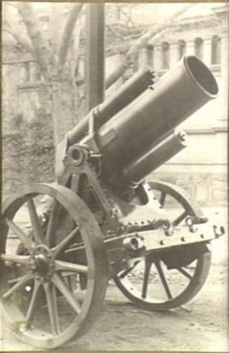 | Keywords: 25cmMinenwerferPresentedToMrsBonClipped.jpeg German Heavy Trench Mortar presented to Mrs Bon by the British Government at the request of Lord Novar and in turn presented to the residents of Bonnie Doon by Mrs Bon <br>Comment This appears to be a 25 cm Minenwerfer 1916 long barrel model J00362 post-1918 Maker Boucher J W; Unknown Copyright clear PD-AustraliaGov 25 cm Minenwerfer Black and white photographs of guns Bonnie Doon War Memorial | ||||