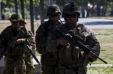 Keywords: 2688375 PNGDF urban patrol US Marines.jpg en U S Marines with Task Force Koa Moana and the Papua New Guinea Defence Force run to their objective point for a simulated military operation urban terrain patrol during Exercise Koa Moana Taurama Barracks Papua New Guinea June 20 2016 Throughout the deployment the Marines and Sailors with the task force will share infantry law enforcement and engineering skills with host nations to strengthen relationships and interoperability in the Asia-Pacific region U S Marine Corps imagery by MCIPAC Combat Camera Lance Cpl Jesus McCloud/ Released 2016-06-19 20 00 00 https //www dvidshub net/image/2688375/koa-moana-162 U S Marine Corps Lance Cpl Jesus McCloud other versions PD-USGov Papua New Guinea Defence Force Relations of Papua New Guinea and the United States Invalid equipment in Exif |