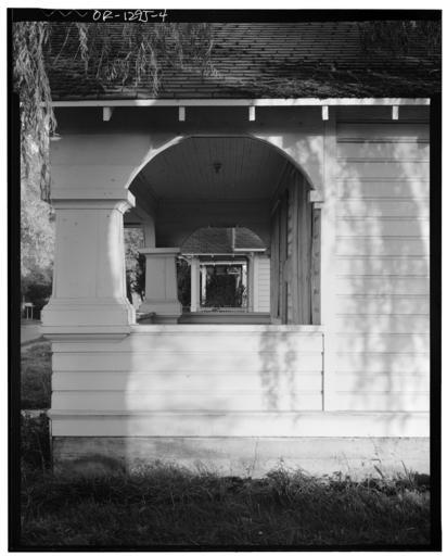 | Keywords: 2974 Misty Street - porch detail - Chemawa Indian School - Salem Oregon.jpg Chemawa Indian School 2974 Misty Street Salem Marion County Oregon Built 1923; demolished 1978 Former National Register of Historic Places listing 1977 photograph from the HABS ”Historic American Buildings Survey images of Oregon - ;Credits LOC card Frame with novelty siding on concrete foundation 32' three-bay front x 62' one-and-a-half stories gable roof with exposed purlins shed dormers three-bay entrance porch with squat columns on solid railing Built 1923; demolished 1978 4 ext photos 1977 Also see Chemawa Indian School OR-129 Card prepared 1979 Item Title Chemawa Indian School House 2974 Misty Street Salem Marion County OR Call Number HABS ORE 24-SAL 1J- Notes Survey number HABS OR-129-J DIGID http //hdl loc gov/loc pnp/hhh or0049 CARD OR0049 Library of Congress Steve Viale 1977-11 OR-129-J Historic American Buildings Survey photographs of the Chemawa Indian School Bungalows in Oregon ~ Former buildings in Oregon ~ Black and white photographs of Oregon Chemawa |