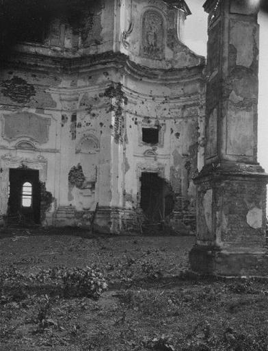 Keywords: Чорторийськ. Домініканський костел. 2.jpg uk Головний фасад зі слідами обст ілу з вогнепальної зб ої Archiwum IS PAN author Поч 20 ст PD-old Dominican Church Staryi Chortoryisk