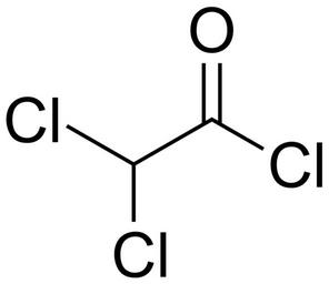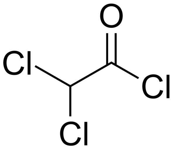 Keywords: 2,2-dichloroacetyl chloride 200.svg validSVG Structure of 2 2-dichloroacetyl chloride Own 2014-05-07 Emeldir <span class signature-talk >talk</span> Chemical structure verified https //upload wikimedia org/wikipedia/commons/a/a3/2 2C2-dichloroacetyl_chloride_200 svg 1S/C2HCl3O/c3-1 4 2 5 6/h1H FBCCMZVIWNDFMO-UHFFFAOYSA-N 79-36-7 201-199-9 PD-chem Carboxylic acid chlorides