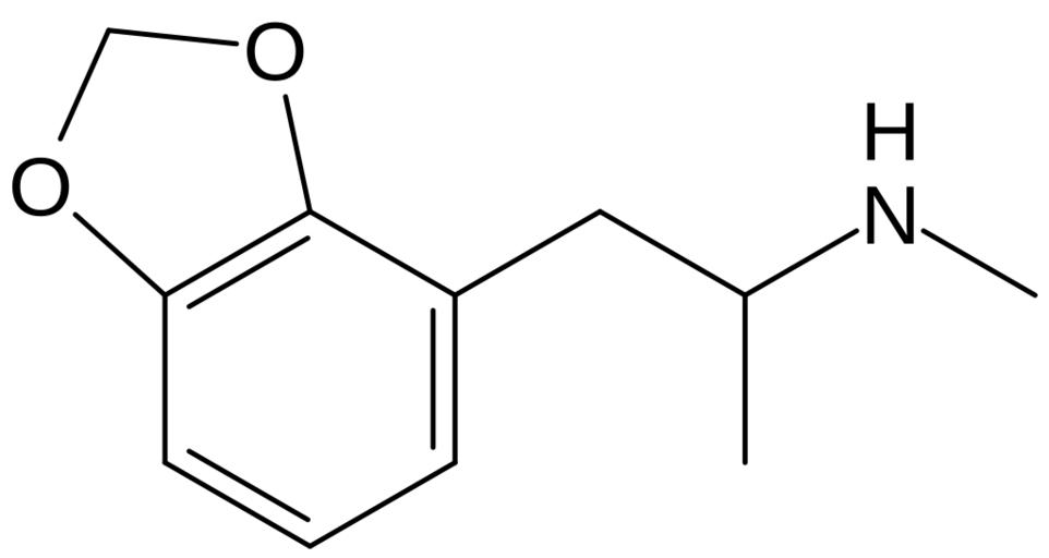 Keywords: 2,3-MDMA.svg Chemical structure of 2 3-MDMA 2 3-methylenedioxymethamphetamine Own 16 16 12 April 2016 UTC Ed Edgar181 Methamphetamines Benzodioxoles