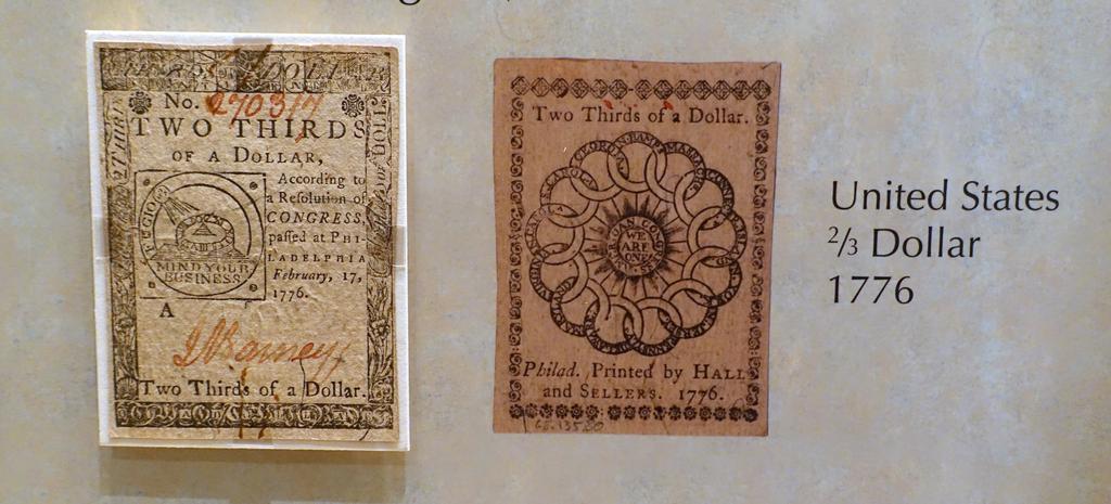 Keywords: 2-3rds Dollar, United States, 1776 - National Museum of American History - DSC00192.jpg en Exhibit in the National Museum of American History Washington DC USA Photography was permitted in the museum without restriction 2015-03-27 11 29 00 own Daderot other versions cc-zero Banknotes in the National Museum of American History Banknotes with a face value of …” Continental currency U S Fractional Currency |