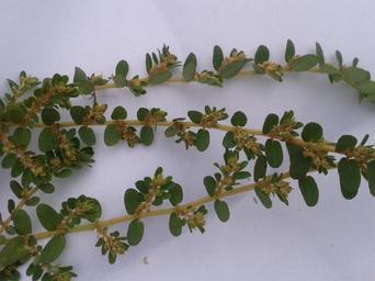 | Keywords: சித்திரப் பாலாடை2.jpg en Botanical name - Euphorbia prostrata Common name - prostrate sandmat Tamil name SITHTHIRAP PAALAADAI holed cream-spread of milk Euphorbia prostrata extract is useful to treat bleeding hemorrhoids ; Leaves are rubbed against scorpion stings; Leaf decoction is consumed to prevent abortion Crushed leaves are eaten for dysentery; The crushed plant is eaten to melt kidney stones;Plant juice induces labour during childbirth;To treat diarrhea also the plant is a traditional medicine; The plant is used for the treatment of deformations of the spinal chord; Latex is also used as an arrow poison;Latex is applied to snakebites; Latex is traditionally used to treat diabetes;For asthma also the plant is handled as medicine;Plant is also a blood purifier In picture - Portions of 'prostrate sandmat'; See the protuberances amidst leaves ta சித்திரப் பாலாடை சின்ன அம்மான் பச்சரிசி எனவும் இது அறியப்படும் ; உலகின் பல பாகங்களிலும் பரம்பரை மருந்தாக இத் தாவரம் வலம்வருகிறது; அம்பின் நுனியில் தடவும் விஷமாக இத் தாவரப் பால் பயன்படுகிறது; பாம்பு கடித்த இடத்தில் இப் பாலை தடவக் குணம் கிடைக்கும் ;ஆஸ்த்மா ந ரிழிவு நோய்களுக்கும் இச் செடி மருந்தாகிறது;இரத்தத்தைத் தூய்மைப் படுத்தும் அருமருந்து இம் மூலிகை ; முதுகுத் தண்டில் ஏற்படும் திருகுகளுக்கு இம் மூலிகை பயன்படுகிறது; சிறுந ரகக் கற்களைக் கரைக்கும் ஆற்றல் கொண்டது இம் மூலிகை படம் - சித்திரப் பாலாடைச் செடியின் இன்னொரு தோற்றம் ; இலைகளுக்கு நடுவே உள்ள முண்டுகளைக் கவனியுங்கள் Own research Dr S Soundarapandian 2014-05-02 Own field work Shot in Chennai Tamilnadu India 4 5 kms off sea-shore ; Latitude-13°02'20 N ; Longitude- 80°13'43 E ; Elevation from sea level - 6 7 m Euphorbia prostrata Cc-zero |