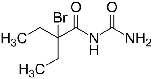 | Keywords: 2-bromo-N-carbamoyl-2-ethylbutanamide 200.svg validSVG Structure of 2-bromo-N-carbamoyl-2-ethylbutanamide Own 2014-05-15 Emeldir <span class signature-talk ></span> Chemical structure verified https //upload wikimedia org/wikipedia/commons/5/5c/2-bromo-N-carbamoyl-2-ethylbutanamide_200 svg 1S/C7H13BrN2O2/c1-3-7 8 4-2 5 11 10-6 9 12/h3-4H2 1-2H3 H3 9 10 11 12 OPNPQXLQERQBBV-UHFFFAOYSA-N 77-65-6 Synonyms <small> alpha -Bromo- alpha -ethylbutyryl carbamide alpha -Bromo- alpha -ethylbutyryl urea alpha-bromo-alpha-ethylbutyryl carbamide alpha-Bromo-alpha-ethylbutyryl carbamide alpha-bromo-alpha-ethylbutyryl urea alpha -Ethyl- alpha -bromobutyrylurea 1-Bromo-ethyl-butyryl-urea 1-bromo-ethyl-butyryl-urea 2-Bromo-2-ethylbutyrylurea 2-bromo-2-ethylbutyrylurea N- 2-Bromo-2-ethylbutyryl urea adalin Adalin Addisomnol addisomnol Adisomnol AI3-51262 BRN 1775637 Bromacetocarbamide bromacetocarbamide Bromacetocarbamidum bromadal Bromadal Bromadal - Carc bromadel Bromadel Bromdiethylacetylurea Bromodiethylacetylcarbamide bromodiethylacetylcarbamide Bromodiethylacetylurea Butanamide N- aminocarbonyl -2-bromo-2-ethyl- Butanamide N- aminocarbonyl -2-bromo-2-ethyl- 9CI Carbrital Carbromal Carbromalum CCRIS 124 component of Carbrital Diacid diacid dormiturin Dormiturin Fydalin fydalin hoggar Hoggar HSDB 4100 Karbromaali karbromal Karbromal Kartryl kartryl Mirfudorm N- aminocarbonyl -2-bromo-2-ethylbutanamide NCI-C03805 nenesin Nenesin NSC 49191 nyctal Nyctal Parkosed parkosed Pelidorm pelidorm Persomnin pianadalin Pianadalin Planadalin planadalin Servadorm Somben Thalambrol tildin Tildin uradal Uradal Urea 2-bromo-2-ethylbutyryl - 8CI Urea 2-bromo-ethylbutyryl - WLN ZVMVXE2 2</small> PD-chem Acylureas |