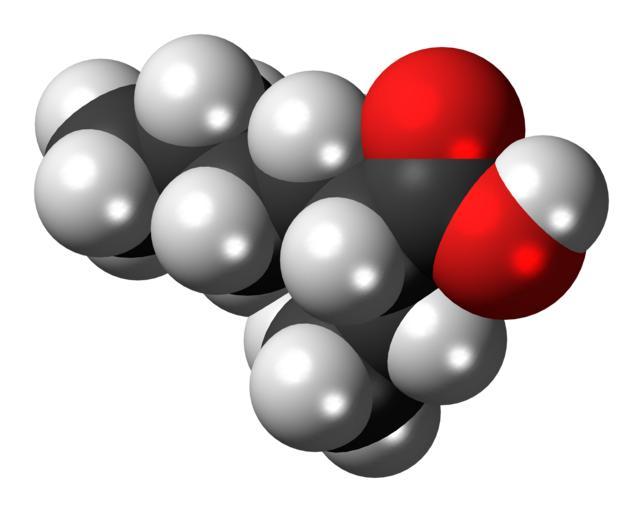 Keywords: 2-Ethylhexanoic-acid-3D-spacefill.png Space-filling model of the 2-ethylhexanoic acid molecule a branched-chain fatty acid Colour code 505050 Carbon C black<br> F0F0F0 Hydrogen H white<br> F51E1E Oxygen O red<br> 2011-03-19 own DS Visualizer Jynto talk Ball-and-stick version cc-zero Saturated fatty acids Images by Jynto Space-filling models Saturated fatty acids in 3D |