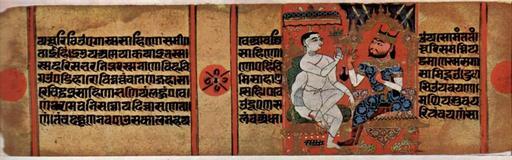 | Keywords: 2 Kâlakâ and the Saka King. Page from Kalakacharyakatha, ca. 1411, Prince Wales Museum, Mumbai.jpg en 2 Kâlakâ and the Saka King Page from Kalakacharyakatha ca 1411 Prince Wales Museum Mumbai 2012-08-21 scan from book Creator Unknown PD-Art Uploaded with UploadWizard Jain paintings Palm-leaf manuscripts in India | ||||