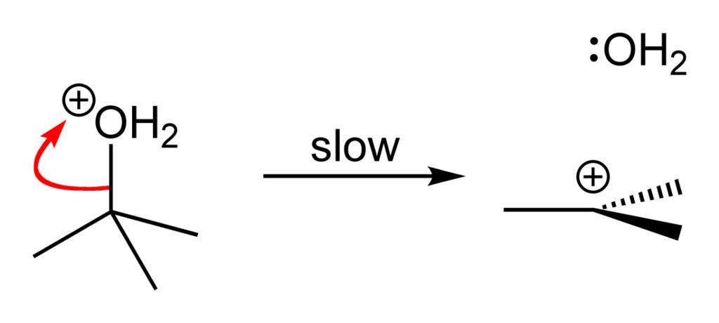 Keywords: 2-water-leaves-protonated-tBuOH-2D-skeletal.png Reaction mechanism of the nucleophilic substitution of tert-butanol by hydrogen chloride Step 2 Protonated tert-butanol loses H<sub>2</sub>O to form the tert-butyl cation CH<sub>3</sub> <sub>3</sub>C<sup>+</sup> Own 2007-12-01 Ben Mills Benjah-bmm27 Images by Ben Mills SN1 of tert-butanol by HCl |