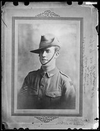 | Keywords: archives state records nsw staterecordsnsw newsouthwales blackandwhite glass plates glassplates wwi soldier war uniform monochrome photo border picture frame black and white Title: 2nd Lieutenant Joseph Victor Pestell, 3rd Battalion. 3rd Battalion, 1st Brigade, A.1.F, killed in France 30th August 1916. [Photographed as a sergeant before embarkation] Dated: 1916 Digital ID: NRS4481_ST5969 Series: NRS 4481 Government Printing Office glass plate negatives Rights: No known copyright restrictions www.records.nsw.gov.au/about-us/rights-and-permissions We'd love to hear from you if you use our photos/documents. Many other photos in our collection are available to view and browse on our website using Photo Investigator. Title: 2nd Lieutenant Joseph Victor Pestell, 3rd Battalion. 3rd Battalion, 1st Brigade, A.1.F, killed in France 30th August 1916. [Photographed as a sergeant before embarkation] Dated: 1916 Digital ID: NRS4481_ST5969 Series: NRS 4481 Government Printing Office glass plate negatives Rights: No known copyright restrictions www.records.nsw.gov.au/about-us/rights-and-permissions We'd love to hear from you if you use our photos/documents. Many other photos in our collection are available to view and browse on our website using Photo Investigator. |