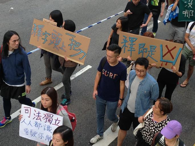 Keywords: 香港各界發起反人大釋法大遊行和集會 30.jpg zh-tw 中 人大常委 11 7日將就香港 年新政兩位議員宣誓風波,對基 法 宣誓 例宣布釋法內容之際,香港民間人權陣線星 天發起各界 反對釋法大遊行 和集 ,抗議人大 香港高等法院審理 宣誓風波司法覆核案 間,主動對基 法第104 釋法,破壞香港獨立的司法制度 香港民陣發起反釋法大遊行後,數以千計的示威 繼續遊行到西環的中聯辦抗議人大釋法 8點半左右,示威 手舉雨傘再次沖擊警方防線,警方則狂噴辣椒噴劑還擊 警方調派大批警員增援,並將配備防暴頭盔的警員派至 線與示威 對峙 警方不斷呼籲示威 持冷 ,不要 擊警方防線,要求示威 盡快離開 9點前, 中聯辦外與警察對峙的示威 突然撤離,輕 西 警署外的徳輔道西和西邊街道口,現場雙向交 中斷, 場自2014年雨傘運動後的佔領行動 醞 中,現場至少 幾千之 十多分鐘後,警方開始廣 播,要求佔路人士離開 示威 9點過後佔據了中聯辦外 段德輔道,並 中聯辦後 外與警方防線展開推撞,警方用辣椒噴 還擊將示威 防線推後 示威 不斷呼喊反對釋法 警方 中聯辦西邊的 光街路口佈署第二道防線,並 警員從路旁的西 警署裡向警察傳遞防暴盾牌 步部署防線 目前還不清楚警方何時清場 2016-11-06 16 17 13 http //www voachinese com/a/hk-protest-20161106/3583208 html 海彥 other versions Custom license marker 2016 11 06 PD-USGov-VOA Oppose the interpretation of Basic Law protest |