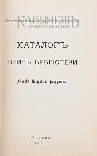 Keywords: Архив аукциона №15(55) Лот 246 Каталог книг библиотеки Алексея Петровича Бахрушина. Выпуск I. Выпуск II. Выпуск дополнительный - Книги на иностранных языках. М., Типо-Литография Торгового Дома А.П. Коркин, 1911-1912. Формат издания: 27 х 18 см. Выпуск I – [1], 1 портрет, [2], 1 л. ил., 1 - 189 с. Выпуск II – 191 - 382 с. Выпуск «Книги на ин. языках» - [2], 1 л.ил., 78 с. Экземпляр в издательских бумажных обложках, в очень хорошем состоянии, незначительный надрыв в верхней части корешка в дополнительном выпуске, в выпуске I подклеена обложка. Предварительная оценка: 13 000 – 16 000 р. <a href="http://www.kabinet-auktion.com/auction/books15/246/" rel="nofollow">www.kabinet-auktion.com/auction/books15/246/</a> 1912 1911 каталог аукцион библиотеканапродажу бахрушинап