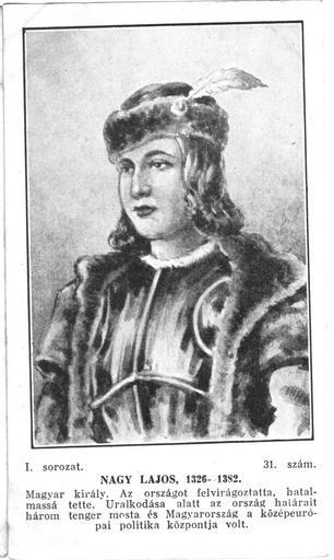 | Keywords: 31. Nagy Lajos.jpg hu A felvétel szkennelés 2012 június 7 én készült A képeslapsorozat korábbi tulajdonosa Bálint János Ócsa volt Az I sor 1 sz 1 sorozat 100 szám jelzetű képeslapok a 101 jelzetű füst albumot töltötték meg A képeslap sorozat képeit az 1920 as években adták ki Az ismeretlen szerző halála óta több mint 70 év telt el A képeslapok hátoldalán ex libris A sorozat képei 1 sz Gróf Széchenyi István 1791 1860 2 sz Deák Ferenc 1803 1876 2 sz 3 sz 4 sz 5 sz 6 sz 7 sz Felsőbükki Nagy Pál 1777 1857 8 sz Báró Eötvös József 1813 1871 9 sz Kossuth Lajos 1802 1894 10 sz Petőfi Sándor 1823 1849 11 sz Liszt Ferenc 1811 1886 12 sz Batthányy Lajos gróf 1806 1849 13 sz II Lajos 1506 1526 14 sz Munkácsy Mihály 1844 1900 15 sz Tisza Kálmán gróf 1830 1902 16 sz Mátyás király 1440 1490 17 sz Arany János 1817 1882 18 sz Tisza István gróf 1865 1918 19 sz Kölcsey Ferenc 1790 1838 20 sz Szinyei Merse Pál 1845 1920 21 sz Jókai Mór 1825 1904 22 sz Mikszáth Kálmán 1849 1910 23 sz Vörösmarty Mihály 1800 1855 24 sz Fadrusz János 1858 1903 25 sz Árpád a Honalapító 26 sz Szent István 975 -1038 27 sz Szent László 1040 - 1095 28 sz Könyves Kálmán 1070 1116 29 sz II Endre 1205 1235 30 sz IV Béla 1206 1270 31 sz Nagy Lajos 32 sz Hunyadi János 33 sz II Rákóczi Ferenc 34 sz Vak Bottyán 35 sz III Károly 36 sz II József 37 sz Madách Imre 38 sz Katona József 39 sz Csokonai Vitéz Mihály 40 sz Lotz Károly 41 sz Pöltenberg Ernő 42 sz Török Ignác 43 sz 44 sz 45 sz 46 sz 47 sz Aulich Lajos 48 sz Damjanich János 49 sz Dessewffy Arisztid 50 sz Lázár Vilmos 51 sz Kiss Ernő 52 sz Sweidel József 53 sz Vécsey Károly 54 sz Táncsics Mihály 55 sz Tompa Mihály 56 sz Rottenbiller Lipót 57 sz Szent Gellért 58 sz Szent Imre 59 sz Kapisztrán János 60 sz Kinizsi Pál 61 sz Tomori Pál 62 sz Zrinyi Miklós 63 sz Gábor Áron 64 sz Bem József 65 sz Bocskay István 66 sz Bethlen Gábor 67 sz József nádor 68 sz Kisfaludy Károly 69 sz Berzsenyi Dániel 70 sz Fáy András 71 sz Semmelweis Ignác 72 sz Egressy Gábor 73 sz Erkel Ferenc 74 sz Szilágyi Dezső 75 sz báró Bánffy Dezső 76 sz Ujházi Ede 77 sz Baross Gábor 78 sz id Wekerle Sándor 79 sz Justh Gyula 80 sz Prohászka Ottokár 81 sz Reményi Ede 82 sz Vámbéry Ármin 83 sz Rákosi Jenő 84 sz Eötvös Károly 85 sz Benczur Gyula 86 sz Blaha Lujza 87 sz Jászai Mari 88 sz Gárdonyi Géza 89 sz Ady Endre 90 sz Gyóni Géza 91 sz Báthori Zsigmond 92 sz Pázmány Péter 93 sz Kisfaludy Sándor 94 sz Goldmark Károly 95 sz Ferenc József 96 sz Erzsébet 97 sz Hermann Ottó 98 sz Lechner Ödön 99 sz Pósa Lajos 100 sz Móra Ferenc 101 jelzet füst album A felvétel és az egész sorozat képei megjelentek Creative Commons alatt a Metapolisz DVD sorozatban 2012-06-07 saját tulajdon author Custom license marker 2012 06 07 PD-old Uploaded with UploadWizard Louis I of Poland and Hungary |