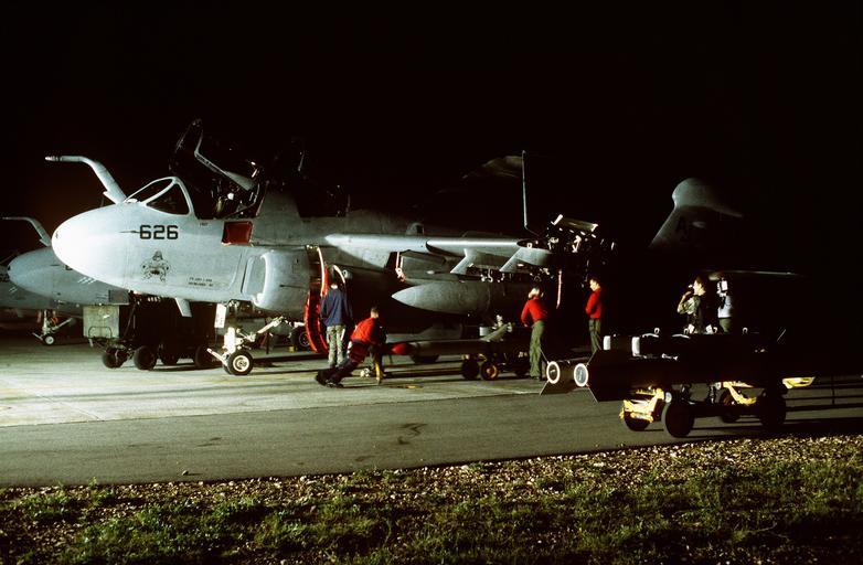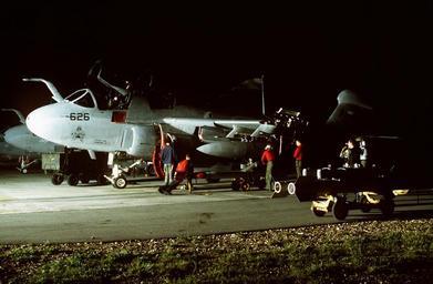 Keywords: df-st-98-00472 dfst9800472 aviano air base avianoairbase italy outdoor 330-CFD-DF-ST-98-00472: US Navy aviation ordnancemen load a US Navy EA-6B Prowler with an AGM-88 HARM missile. The ground crew is preparing the aircraft for a NATO airstrike against the Bosnian Serbs. HARM or High-speed Anti-Radiation Missiles, are air-to-surface tactical missiles designed to seek out and destroy enemy radar-equipped air defense systems. The aircraft is from Tactical Electronic Warfare Squadron 141 deployed on board the aircraft carrier USS Theodore Roosevelt (CVN-71). The Roosevelt is operating in the Adriatic Sea in support of the operation, 9/12/1995, (OPA-NARA II-8/17/2015). 330-CFD-DF-ST-98-00472: US Navy aviation ordnancemen load a US Navy EA-6B Prowler with an AGM-88 HARM missile. The ground crew is preparing the aircraft for a NATO airstrike against the Bosnian Serbs. HARM or High-speed Anti-Radiation Missiles, are air-to-surface tactical missiles designed to seek out and destroy enemy radar-equipped air defense systems. The aircraft is from Tactical Electronic Warfare Squadron 141 deployed on board the aircraft carrier USS Theodore Roosevelt (CVN-71). The Roosevelt is operating in the Adriatic Sea in support of the operation, 9/12/1995, (OPA-NARA II-8/17/2015). |