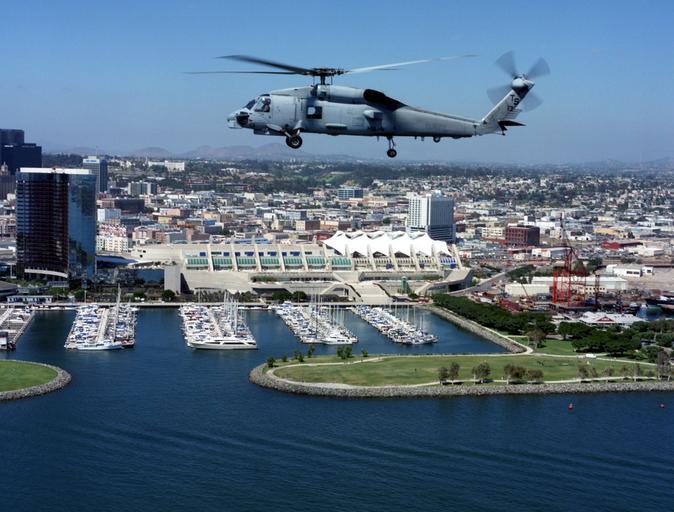 Keywords: san diego sandiego california (ca) californiaca united states of america (usa) unitedstatesofamericausa outdoor water waterfront aerial 330-CFD-DN-SC-04-14299: Aerial view of a US Navy (USN) SH-60 LAMPS MK III Seahawk, Light Helicopter Anti-Submarine Squadron 41 (HSL-41), Seahawks, in flight with its home base, Naval Air Station North Island (NASNI), California (CA), seen in the background, 6/15/1990. PH2 G. Curry, USN. (OPA-NARA II-9/24/2015) 330-CFD-DN-SC-04-14299: Aerial view of a US Navy (USN) SH-60 LAMPS MK III Seahawk, Light Helicopter Anti-Submarine Squadron 41 (HSL-41), Seahawks, in flight with its home base, Naval Air Station North Island (NASNI), California (CA), seen in the background, 6/15/1990. PH2 G. Curry, USN. (OPA-NARA II-9/24/2015) |