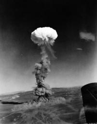 Keywords: blackandwhite monochrome surreal outdoor black and white 330-PS-3256 (A 6320.A.C.): A mushroom storm cloud rises from the Nevada desert following one of the recent test detonations. This photograph was made from a U.S. Air Force aircraft assigned to Air Force Special Weapons Center, Kirkland Air Force Base, New Mexico. In supporting Armed Forces Special Weapons Project as many as 40 specially equipped U.S. Air Force aircraft were utilized in direct support of the Atomic Energy Commission’s test program each time there are atomic tests at the Nevada Proving Ground. Photograph released March 16, 1953. (5/5/2015). 330-PS-3256 (A 6320.A.C.): A mushroom storm cloud rises from the Nevada desert following one of the recent test detonations. This photograph was made from a U.S. Air Force aircraft assigned to Air Force Special Weapons Center, Kirkland Air Force Base, New Mexico. In supporting Armed Forces Special Weapons Project as many as 40 specially equipped U.S. Air Force aircraft were utilized in direct support of the Atomic Energy Commission’s test program each time there are atomic tests at the Nevada Proving Ground. Photograph released March 16, 1953. (5/5/2015). |