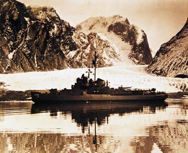 Keywords: outdoor water 330-PS-6008 (USN 483601): Navy Testing Cosmic Radiation at North Geomagnetic Pole. The U.S. Navy icebreaker USS Staten Island (AGB-5) with a group of civilian and naval scientists onboard left Boston, Massachusetts, on July 18, 1953, for the North Geomagnetic Pole. They will make a comprehensive series of high altitude observations of the primary cosmic radiation and the pressure, temperature, and density of the atmosphere in the northern latitudes. This project, known as Project Mushrat, is sponsored by the Office of Naval Research with the assistance of the Bureau of Aeronautics and the Military Sea Transportation Service – Atomic Energy Commission Joint Program of Basic Research in Nuclear Physics, and the Naval Research Laboratory Program of Upper Atmosphere Research. Because of the widespread interest in the project, and particularly in the balloon-rocket technique, a number of observers from the three military services will accompany the expedition. The Balloon-Rocket Technique, commonly referred to as Balloon Assisted Take-Off (BATO) or Rockoon, was developed by Dr. James A. Van Allen at Iowa State University and used on board the USCGC Eastwind during the summer of 1952. This method makes it possible to reach high altitudes by small, relatively inexpensive rockets. During the summer of 1952, one of the balloon rocket flights launched from Eastwind and achieved a peak altitude of about 295,000 feet. USS Staten Island (AGB-5) is shown reflecting in the water. Photograph released June 28, 1953. (4/21/2015). 330-PS-6008 (USN 483601): Navy Testing Cosmic Radiation at North Geomagnetic Pole. The U.S. Navy icebreaker USS Staten Island (AGB-5) with a group of civilian and naval scientists onboard left Boston, Massachusetts, on July 18, 1953, for the North Geomagnetic Pole. They will make a comprehensive series of high altitude observations of the primary cosmic radiation and the pressure, temperature, and density of the atmosphere in the northern latitudes. This project, known as Project Mushrat, is sponsored by the Office of Naval Research with the assistance of the Bureau of Aeronautics and the Military Sea Transportation Service – Atomic Energy Commission Joint Program of Basic Research in Nuclear Physics, and the Naval Research Laboratory Program of Upper Atmosphere Research. Because of the widespread interest in the project, and particularly in the balloon-rocket technique, a number of observers from the three military services will accompany the expedition. The Balloon-Rocket Technique, commonly referred to as Balloon Assisted Take-Off (BATO) or Rockoon, was developed by Dr. James A. Van Allen at Iowa State University and used on board the USCGC Eastwind during the summer of 1952. This method makes it possible to reach high altitudes by small, relatively inexpensive rockets. During the summer of 1952, one of the balloon rocket flights launched from Eastwind and achieved a peak altitude of about 295,000 feet. USS Staten Island (AGB-5) is shown reflecting in the water. Photograph released June 28, 1953. (4/21/2015).