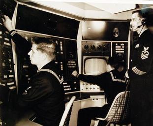 Keywords: indoor 330-PSA-75-61 (USN 710881): Navy Gets First Helicopter Simulator. The Navy has accepted delivery of its first helicopter flight and weapons system simulator – a training device that duplicates, while on the ground, the full performance range of the all-weather HSS-2 Sikorsky helicopter. The HSS-2 is equipped with the AN/AQS-10 sonar and is designed as an advanced system for anti-submarine warfare. It is scheduled to become operational this year. The helicopter weapons system trainer, the first ever to be produced, was designed and built by Melpar, Inc., Falls Church, Virginia, veteran builder of flight simulators, under contract to U.S. Naval Training Device Center, an activity of the Office of Naval Research. The HSS-2, which can be operated during daylight, night or instrument flight conditions, is capable of carrying out such ASW tasks as detection, tracking and destruction of enemy submarines as well as sea rescue services and visual reconnaissance. A high degree of skill is required of the crew, (pilot, co-pilot and two sonarmen), to execute these missions. The simulator will be used to train crews for all phases of tactical missions, including communications, navigation, ASW research procedures, target tracking, detection and classification, and the delivery of weapons. The cockpit, sonar, and flight control equipment in the trailer duplicate exactly the actual helicopter. The simulator is housed in two mobile, air-conditioned trailers. One unit, 40 feet long, houses the trainee’s compartment and the two instructor’s stations. The other is a 32-foot equipment trailer containing power supply and computer equipment and facilities for trainer repair and maintenance. Photograph released April 17, 1961. (9/15/15). 330-PSA-75-61 (USN 710881): Navy Gets First Helicopter Simulator. The Navy has accepted delivery of its first helicopter flight and weapons system simulator – a training device that duplicates, while on the ground, the full performance range of the all-weather HSS-2 Sikorsky helicopter. The HSS-2 is equipped with the AN/AQS-10 sonar and is designed as an advanced system for anti-submarine warfare. It is scheduled to become operational this year. The helicopter weapons system trainer, the first ever to be produced, was designed and built by Melpar, Inc., Falls Church, Virginia, veteran builder of flight simulators, under contract to U.S. Naval Training Device Center, an activity of the Office of Naval Research. The HSS-2, which can be operated during daylight, night or instrument flight conditions, is capable of carrying out such ASW tasks as detection, tracking and destruction of enemy submarines as well as sea rescue services and visual reconnaissance. A high degree of skill is required of the crew, (pilot, co-pilot and two sonarmen), to execute these missions. The simulator will be used to train crews for all phases of tactical missions, including communications, navigation, ASW research procedures, target tracking, detection and classification, and the delivery of weapons. The cockpit, sonar, and flight control equipment in the trailer duplicate exactly the actual helicopter. The simulator is housed in two mobile, air-conditioned trailers. One unit, 40 feet long, houses the trainee’s compartment and the two instructor’s stations. The other is a 32-foot equipment trailer containing power supply and computer equipment and facilities for trainer repair and maintenance. Photograph released April 17, 1961. (9/15/15). |
