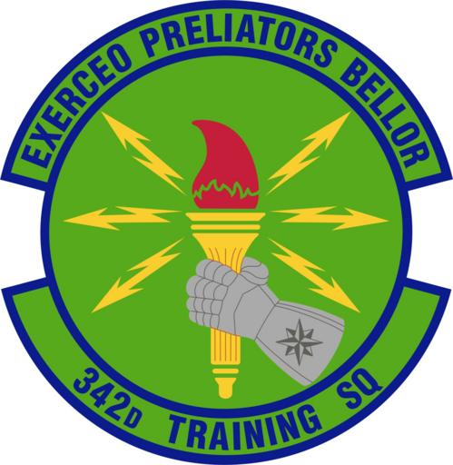 Keywords: 342d Training Squadron.png /Blazon On a disc Vert a torch Or enflamed Gules grasped by a gauntlet Argent Silver Gray detailed with a compass star of the same and between six lightning bolts of the second radiating to dexter and sinister all within a narrow border Blue Attached above the disc a Green scroll edged with a narrow Blue border and inscribed EXERCEO PRELIATORS BELLOR in Blue letters Attached below the disc a Green scroll edged with a narrow Blue border and inscribed 342D TRAINING SQ in Blue letters Symbolism Ultramarine blue and Air Force yellow are the Air Force colors Blue alludes to the sky the primary theater of Air Force operations Yellow refers to the sun and the excellence required of Air Force personnel The green background symbolizes the wisdom and the mission of ground and air to ground combat skills training The lightning bolts represent the abilities of the Squadron in the execution of the mission in six major Air Force specialties The torch represents knowledge and training The gauntlet symbolizes combat power through worldwide deployment 8661 Air Force http //www tioh hqda pentagon mil/Catalog/ViewImage aspx id 8661 United States Air Force PD-USGov-Military other versions PD-USGov Military in Texas Emblems of United States Air Force technical training Squadrons 37th Training Wing United States Air Force |