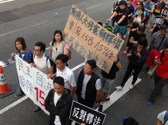 Keywords: 香港各界發起反人大釋法大遊行和集會 34.jpg zh-tw 中 人大常委 11 7日將就香港 年新政兩位議員宣誓風波,對基 法 宣誓 例宣布釋法內容之際,香港民間人權陣線星 天發起各界 反對釋法大遊行 和集 ,抗議人大 香港高等法院審理 宣誓風波司法覆核案 間,主動對基 法第104 釋法,破壞香港獨立的司法制度 香港民陣發起反釋法大遊行後,數以千計的示威 繼續遊行到西環的中聯辦抗議人大釋法 8點半左右,示威 手舉雨傘再次沖擊警方防線,警方則狂噴辣椒噴劑還擊 警方調派大批警員增援,並將配備防暴頭盔的警員派至 線與示威 對峙 警方不斷呼籲示威 持冷 ,不要 擊警方防線,要求示威 盡快離開 9點前, 中聯辦外與警察對峙的示威 突然撤離,輕 西 警署外的徳輔道西和西邊街道口,現場雙向交 中斷, 場自2014年雨傘運動後的佔領行動 醞 中,現場至少 幾千之 十多分鐘後,警方開始廣 播,要求佔路人士離開 示威 9點過後佔據了中聯辦外 段德輔道,並 中聯辦後 外與警方防線展開推撞,警方用辣椒噴 還擊將示威 防線推後 示威 不斷呼喊反對釋法 警方 中聯辦西邊的 光街路口佈署第二道防線,並 警員從路旁的西 警署裡向警察傳遞防暴盾牌 步部署防線 目前還不清楚警方何時清場 2016-11-06 16 18 14 http //www voachinese com/a/hk-protest-20161106/3583208 html 海彥 other versions Custom license marker 2016 11 06 PD-USGov-VOA Oppose the interpretation of Basic Law protest |