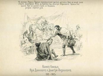 Keywords: 36 History of the Russian state in the image of its sovereign rulers.jpg ru Великие Князья Ю ий Данилович и Димит ий ихайлович 1319-1327 г <br>С кончиною ихаила Тве ского великокняжеский п естол достался Ю ию но вско е был отнят Димит ием стя за убийство отца Димит ий ихайлович Г озные Очи с азил Ю ия в ханской ставке не убоявшись асп авы сви епого хана full 36 History of the Russian state in the image of its sovereign rulers - fragment jpg Yuri of Moscow in engravings Dmitry Mikhailovich
