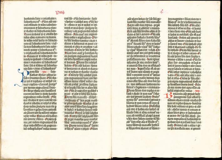 | Keywords: 36-line Bible.jpg en Spread from the 36-line Bible printed in 1458 1460s in Bamberg Copy of the Bayerische Staatsbibliothek ru Π Π°Π·Π²ΠΎΡ ΠΎΡ ΠΈΠ· 36-ΡΡΡ ΠΎΡΠ½ΠΎΠΉ ΠΠΈΠ±Π»ΠΈΠΈ Π½Π°ΠΏΠ΅ΡΠ°ΡΠ°Π½Π½ΠΎΠΉ Π² 1458 1460-Ρ